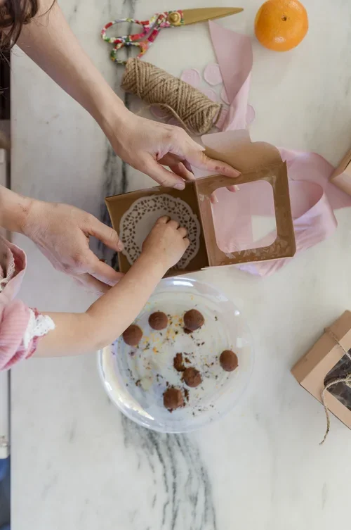 Little chocolate ganache balls dusted with cacao powder will be everyone’s favorite sweet bite this season. Packed in a beautiful box, they will make a great gift!