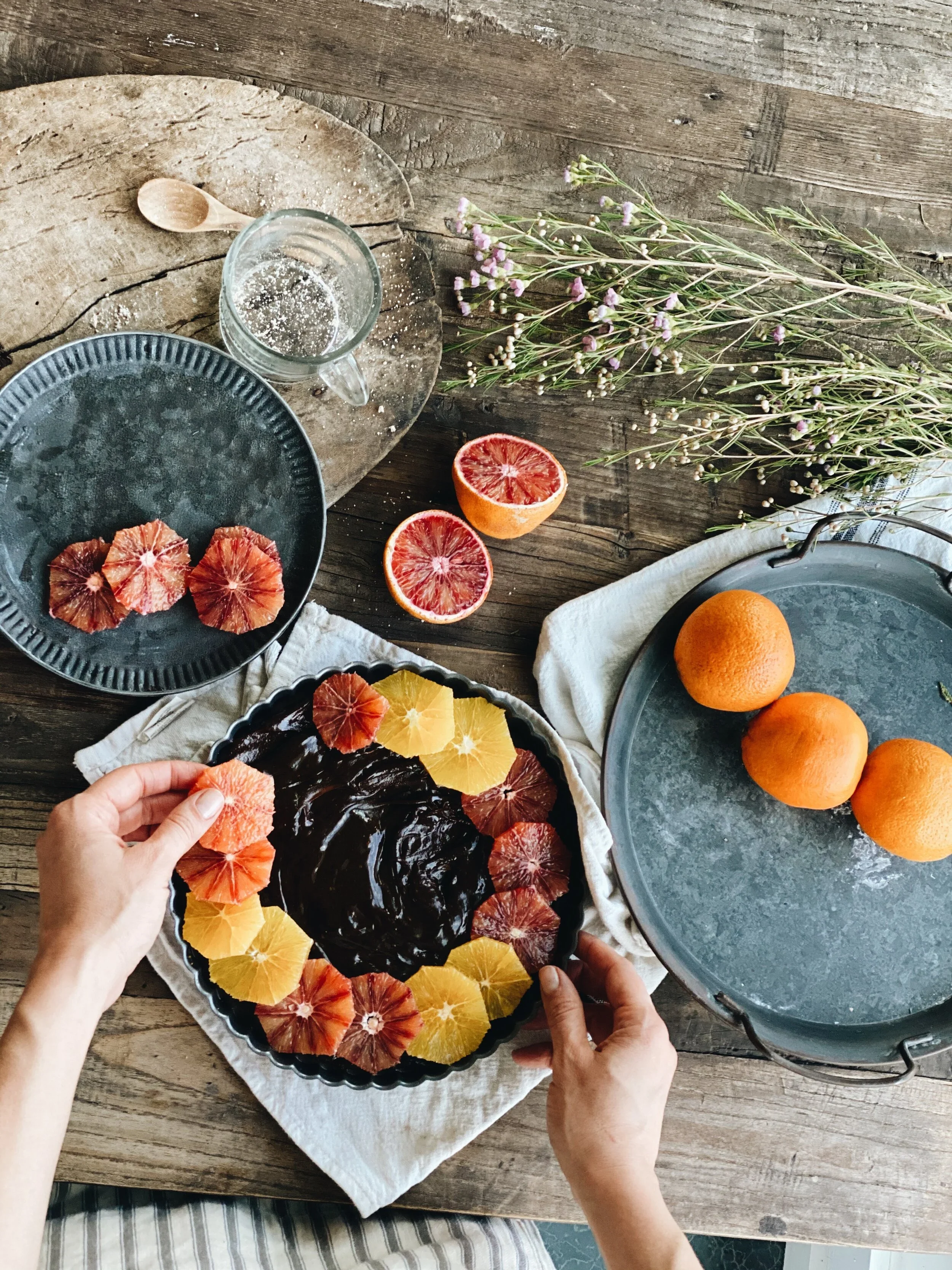 The citrus against the shiny dark chocolate makes this tart a standout delight for any table!