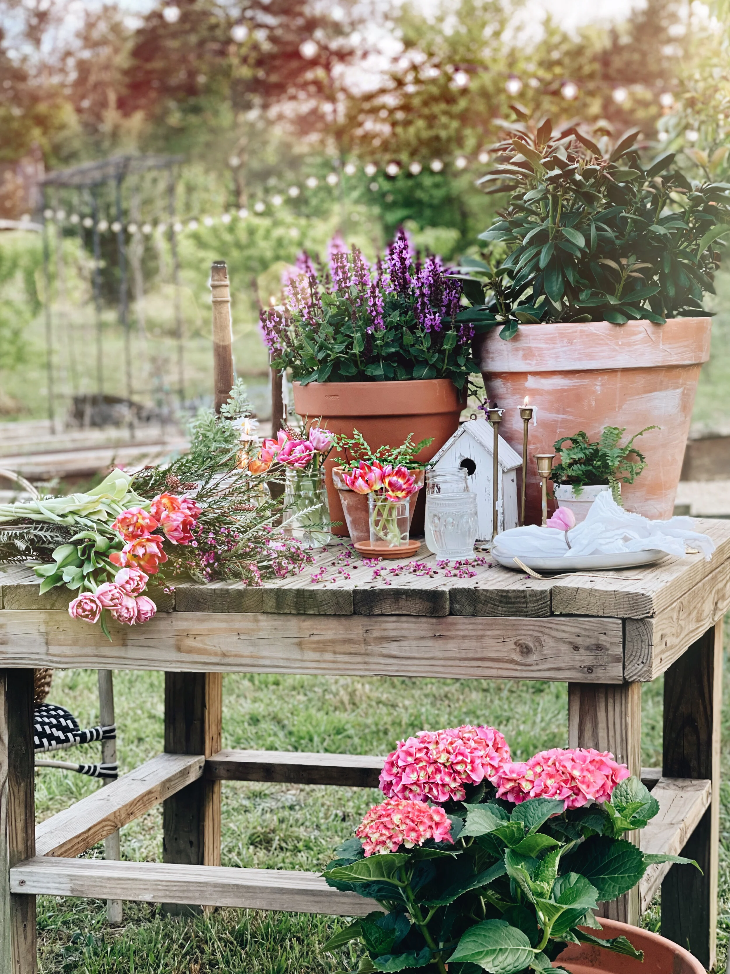 Beautiful moments made while gathered outdoors to enjoy dinner. Scroll to see a simple table full of spring blooms and candlelight.